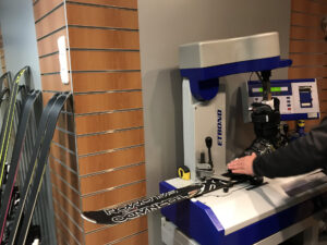 Het onderhoud van skies en snowboards (het vullen en slijpen en waxen) doen we zelf. Ook niet onbelangrijk is het afstellen van de binding van de skies, want dit is specialistenwerk. Skibindingen moeten goed afgesteld zijn, voor jezelf en je kniebanden in het bijzonder.